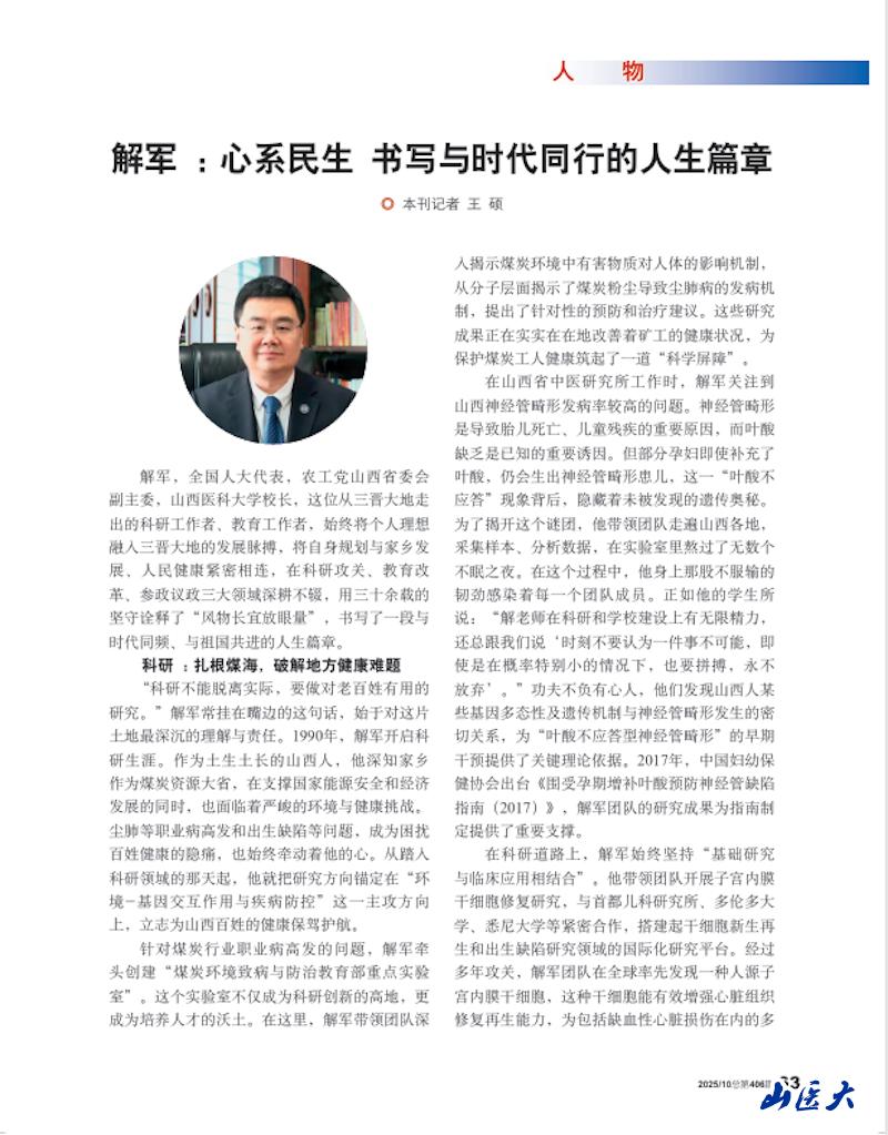 附:《中國(guó)統(tǒng)一戰(zhàn)線》2025年第10期《解軍:心系民生 書寫與時(shí)代同行的人生篇章》