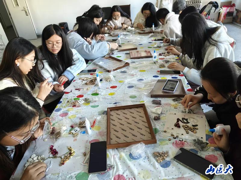 活動伊始,中藥資源科學考察隊成員結合自身專業積累,對現場陳列的各類中藥材展開了詳實的講解。為同學們逐一介紹了每種中藥材的藥用功效和性味歸經,讓在場同學們直觀感受到中藥的獨特底蘊;同時,還展示了數幅中藥貼畫作品,讓大家感受到了“本草美學”的特別魅力。