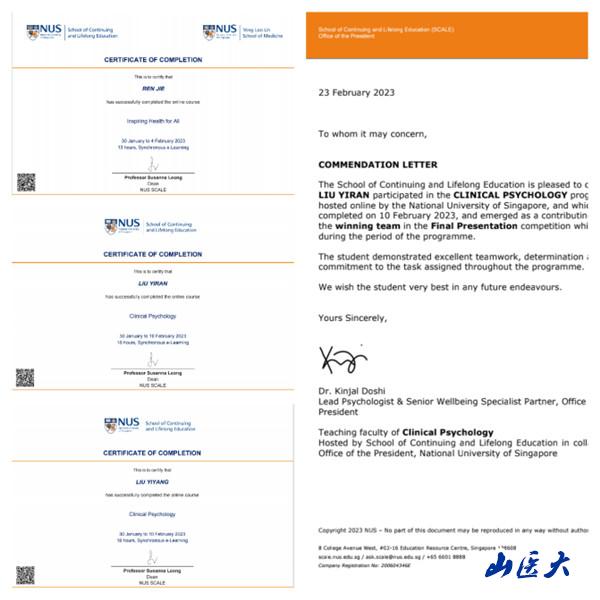 2023年寒假,我校要嘉欣、寧潤宇、黨海瑩、黃科縉、劉怡然、劉易陽、尹玲和任潔8名同學獲學校獎學金支持,與來自國內外多所院校的學子共同完成新加坡國立大學為期六周的線上訪學項目學習,并取得優異成績。