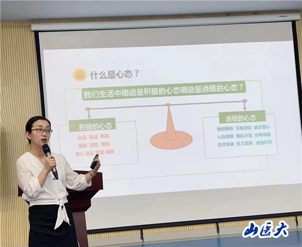 首先,一襲白衣燕帽的2019級畢業生代表,以手語操“一路生花”拉開序幕。接著,郭翠梅老師從心態與健康、大學生心理健康標準、如何塑造陽光心態、追求高品質大學生活四個方面,從淺入深、引古論今、虛實結合,用自己豐富的帶班經驗將心理學、教育學的專業知識生動形象得講給學生們,并鼓勵學生們接納不足、學會感恩、付出奉獻、培養好習慣,學生們紛紛表示感同身受、受益匪淺。