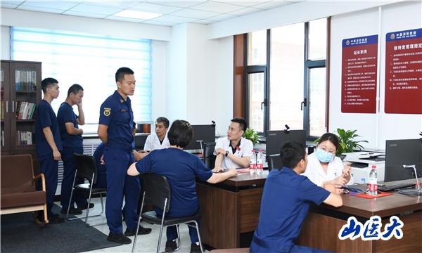 7月27日,在“八一”建軍節(jié)即將來臨之際,我校第二醫(yī)院副院長李少剛帶領(lǐng)保衛(wèi)科科長關(guān)麗華,骨科、普外科、心內(nèi)科、心電診斷科醫(yī)師及相關(guān)工作人員到杏花嶺消防救援大隊北大街消防救援站,為站內(nèi)66名隊員進行義診和健康宣教。李少剛向消防隊全體消防員致以節(jié)日的問候和崇高的敬意,并代表醫(yī)院向消防隊員們贈送了防暑常用藥品。