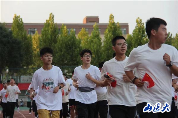 跑步結束后,同學們陸續回到操場中央,在合唱團成員的引領下齊聲高唱歌曲《我和我的祖國》。“拳拳愛國情,深深祝福意。”嘹亮的歌聲飽含了同學們對祖國的熱愛之情,唱響了一代又一代山醫人濃濃的愛國情懷。歡呼聲、歡笑聲和音樂聲交織在一起,現場活動的氣氛推向了高潮。
