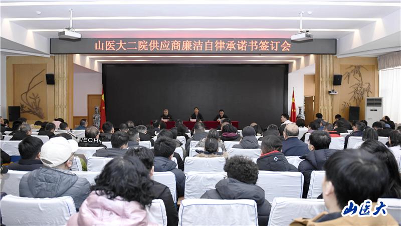 會上,全體參會人員觀看了安全生產和醫藥反腐相關警示教育片,醫院紀檢監察室主任王飛宣讀了我校第二醫院供應商廉潔自律告知書,醫務處(行風辦)主任劉虎子宣讀了我校第二醫院供應商廉潔自律承諾書。6位供應商負責人代表上臺簽訂承諾書。