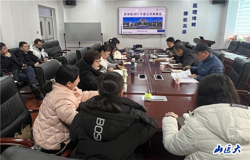 2月29日上午,藥學院在中都校區明德樓A座403會議室召開了學院2024年度工作部署會。院領導班子、教研室主任、黨支部書記、科級以上干部參加了會議。會議由副院長(主持工作)侯銳鋼主持。