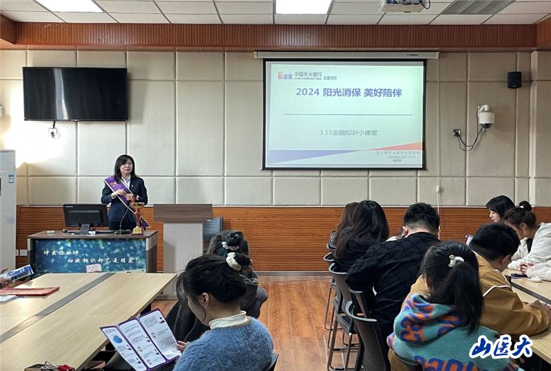 在“3·15國際消費者權益日”到來之際,為強化大學生維權意識和風險防范能力,引導大學生樹立正確的消費觀,人文社會科學學院于3月15日在中都校區開展了“陽光消保,美好陪伴”主題講座。學院邀請到中國光大銀行太原分行營業部副總經理劉碩進行講解,學院本科生、研究生共60余人參加了講座。
