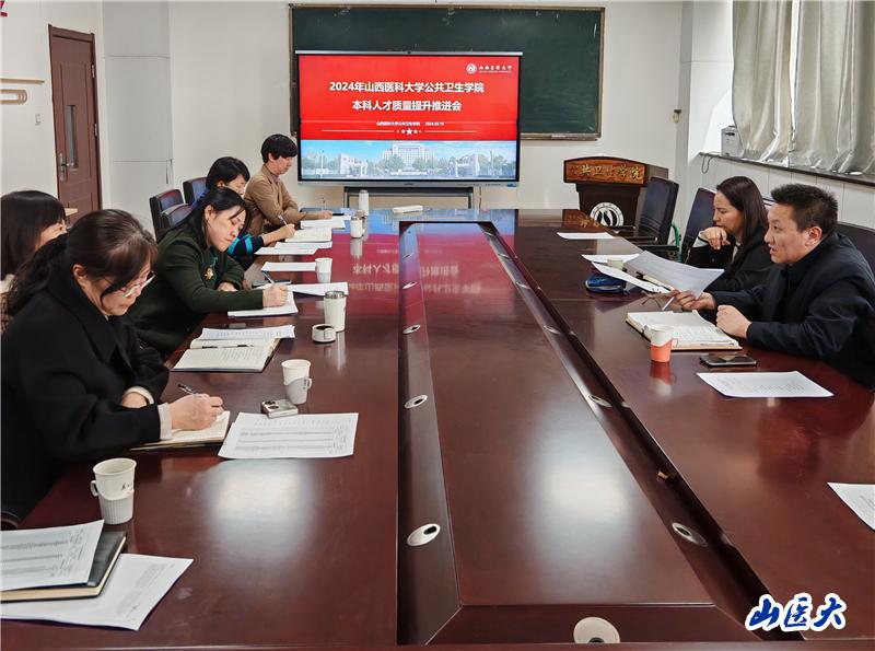 3月19日下午,公共衛生學院在迎澤校區公衛樓三層會議室召開2024年本科人才培養質量提升推進會。公共衛生學院黨委書記張志紅、副院長聶繼盛以及各科室負責人參加了會議。會議由聶繼盛主持。