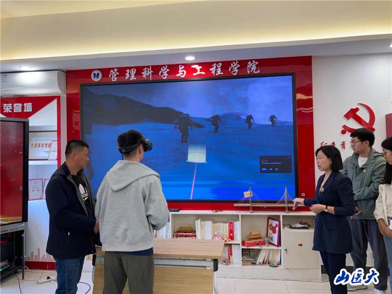 山西財經大學管理科學與工程學院獲評2019年全省高校黨建工作“標桿院系”、全省高校研究生“樣板黨支部”。學院黨委副書記陳霞引導學生參觀了黨建文化長廊,介紹了學院的歷史沿革、發展現狀、黨團建設、升學就業等,分享了組織育人方面的經驗與成果。通過智慧黨建體驗中心的VR設備,學生沉浸式體驗了紅軍長征途中的艱難,對長征精神有了更深刻的體悟與認同。