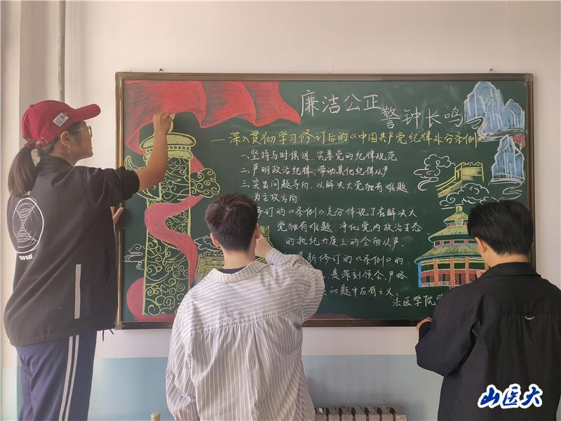 法醫學院黨總支書記孫俊紅表示,校園處處皆文化,要利用好校園環境的一花一草,特別是學院沉默墻裙上的“黑板報”,要讓它充分發揮高校文化育人功能,既要起到宣傳陣地的作用,也是各黨支部、團支部施展才華的一塊天地。要匯聚師生集體智慧,營造全院上下濃厚學習氛圍。