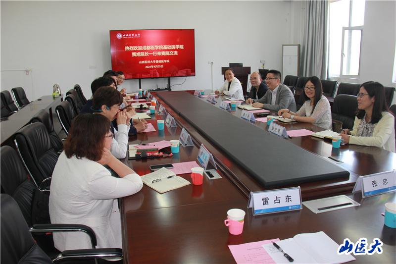 4月24—25日,成都醫學院基礎醫學院院長賈旭一行來到我校基礎醫學院調研交流。基礎醫學院院長陸利,副院長張宇、劉繼斌,學院教學科、科研科、教學督導等相關人員參加了交流會。