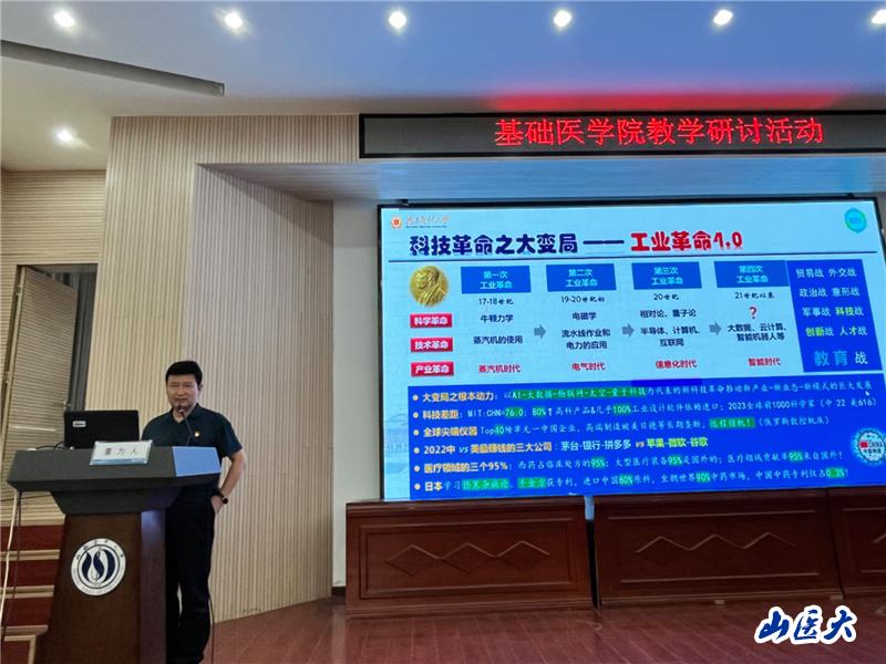 5月29日下午,基礎(chǔ)醫(yī)學(xué)院在基礎(chǔ)報告廳舉辦教學(xué)研討活動。活動邀請南方醫(yī)科大學(xué)實驗管理中心主任、國家級實驗教學(xué)示范中心聯(lián)席會基礎(chǔ)醫(yī)學(xué)組組長董為人教授擔(dān)任嘉賓,教務(wù)部、基礎(chǔ)醫(yī)學(xué)院相關(guān)負(fù)責(zé)人和學(xué)院各教研室主任、骨干教師參加了活動。