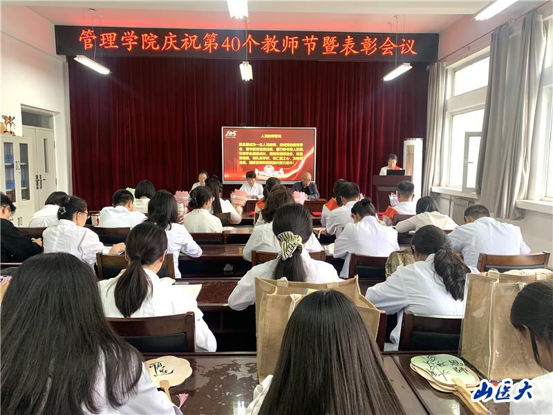 9月10日,管理學院舉辦慶祝第40個教師節暨表彰會。學院黨委書記李紅梅主持會議并講話,學院黨委副書記喬曉梅領學領誓教育家精神和《人民教師誓詞》,副院長李建濤宣讀表彰決定,學院全體教師和學生代表參加了會議。