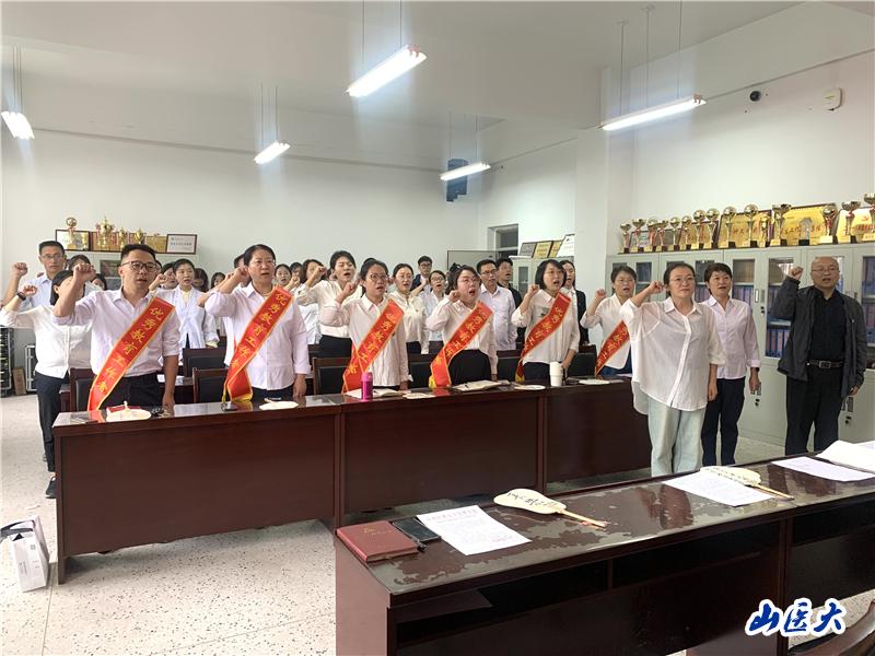 會上,受表彰教師代表韓穎作了交流發言,她分享了自己在山醫腳踏實地,踔厲奮發的心得體會;學院學子還將自己精心制作的漆畫扇獻禮教師節,會議在激昂奮進的校歌聲中結束。