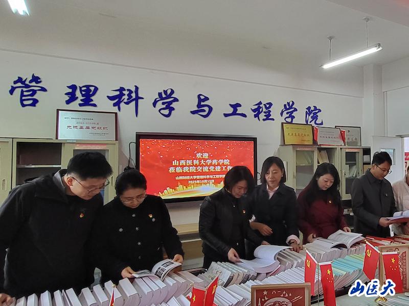 為進一步推進黨建工作規(guī)范提升專項行動提質(zhì)增效,10月15日上午,我校藥學院黨委書記李薇、副書記童玲帶領學院黨支部書記一行9人,赴“全國黨建工作標桿院系”山西財經(jīng)大學管理科學與工程學院開展黨建工作專題學習交流活動。