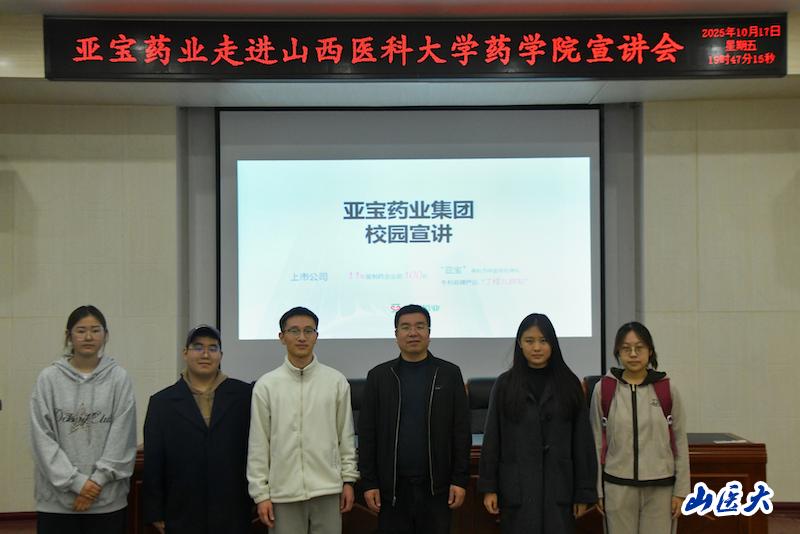 宣講會(huì)上,亞寶藥業(yè)集團(tuán)人事部經(jīng)理任碧海系統(tǒng)性地介紹了亞寶藥業(yè)的企業(yè)概況、核心研發(fā)方向、重點(diǎn)產(chǎn)品矩陣及未來戰(zhàn)略規(guī)劃。他特別對(duì)丁桂兒臍貼、曲克蘆丁片等明星產(chǎn)品進(jìn)行了深入解析,并重點(diǎn)展示了基于山西道地藥材的“晉藥”系列創(chuàng)新成果,企業(yè)深厚的研發(fā)實(shí)力與本土創(chuàng)新特色,激發(fā)了在座學(xué)子的文化自信與地域自豪感。