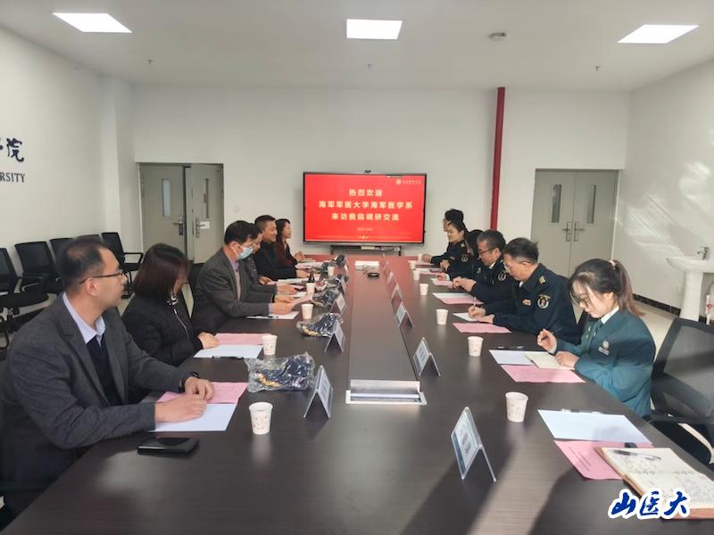 會上,宋歡首先代表學院向高福主任一行致以熱烈歡迎。張志紅圍繞高水平公共衛生學院建設目標,詳細介紹了學院基本情況,著重闡述了學院在人才培養、科學研究、師資隊伍、社會服務、教學管理、國際合作以及組織保障等方面的發展成效。高福介紹了海軍軍醫大學海軍醫學系的發展歷程、學科布局和特色優勢,并表達了此行的調研計劃。常文軍介紹了海軍醫學系的特色科研工作和軍民融合項目情況,期待與我校公共衛生學院開展特色科研合作。