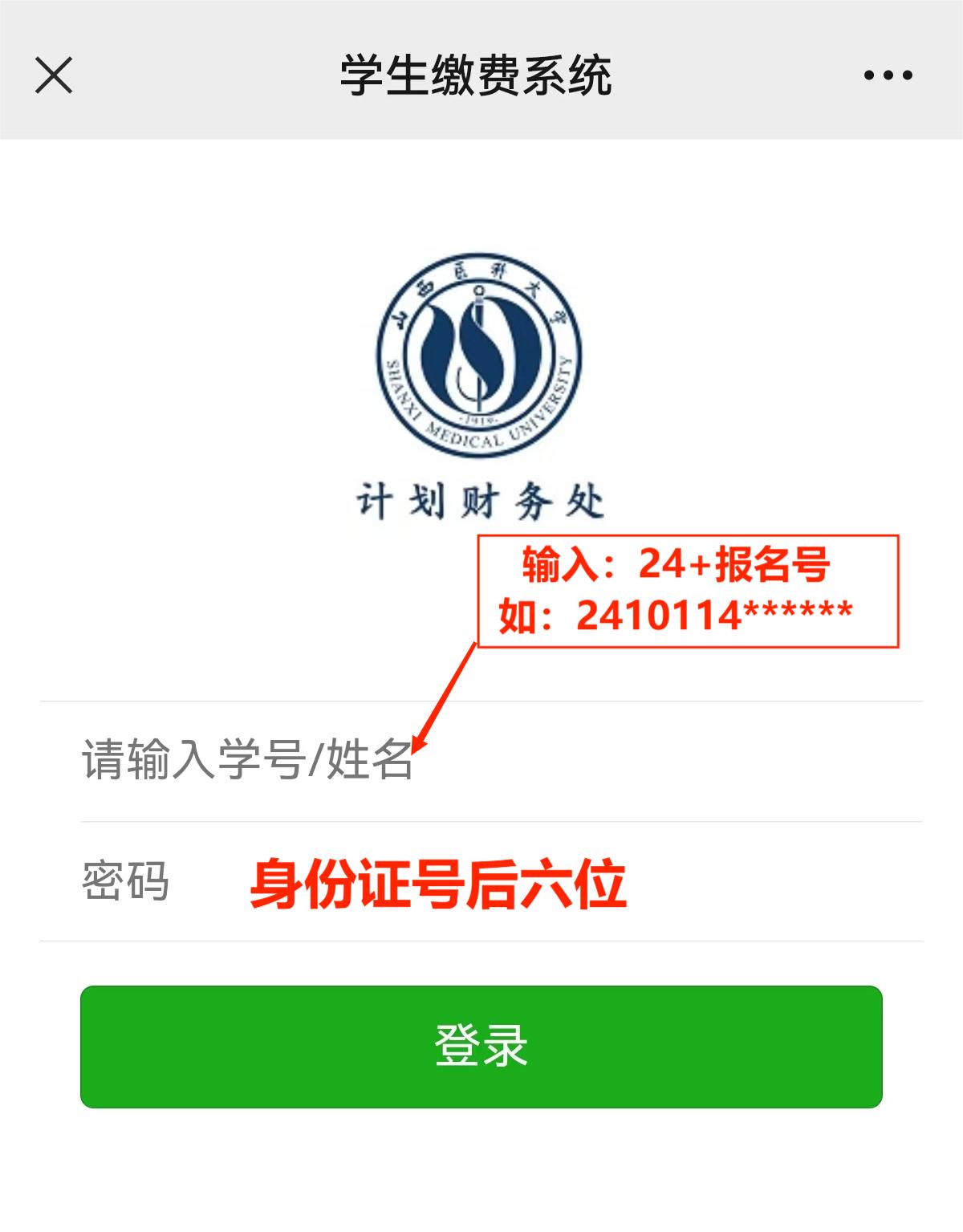 考生通過(guò)微信公眾平臺(tái)自助繳納報(bào)名費(fèi):1.搜索微信公眾號(hào)“c7c7.app計(jì)劃財(cái)務(wù)部”或掃描下方二維碼;2.點(diǎn)擊菜單,業(yè)務(wù)辦理→學(xué)生繳費(fèi),在學(xué)號(hào)處輸入24+考生本人的報(bào)名號(hào)(例:2410114*****),初始密碼為身份證號(hào)后六位,登錄自助繳費(fèi)系統(tǒng)(見(jiàn)圖例);3.點(diǎn)擊“我要繳費(fèi)”,選擇繳費(fèi)年度(2024),確認(rèn)繳費(fèi)信息,通過(guò)銀聯(lián)在線進(jìn)行支付(任何有銀聯(lián)標(biāo)志儲(chǔ)蓄卡均可)。